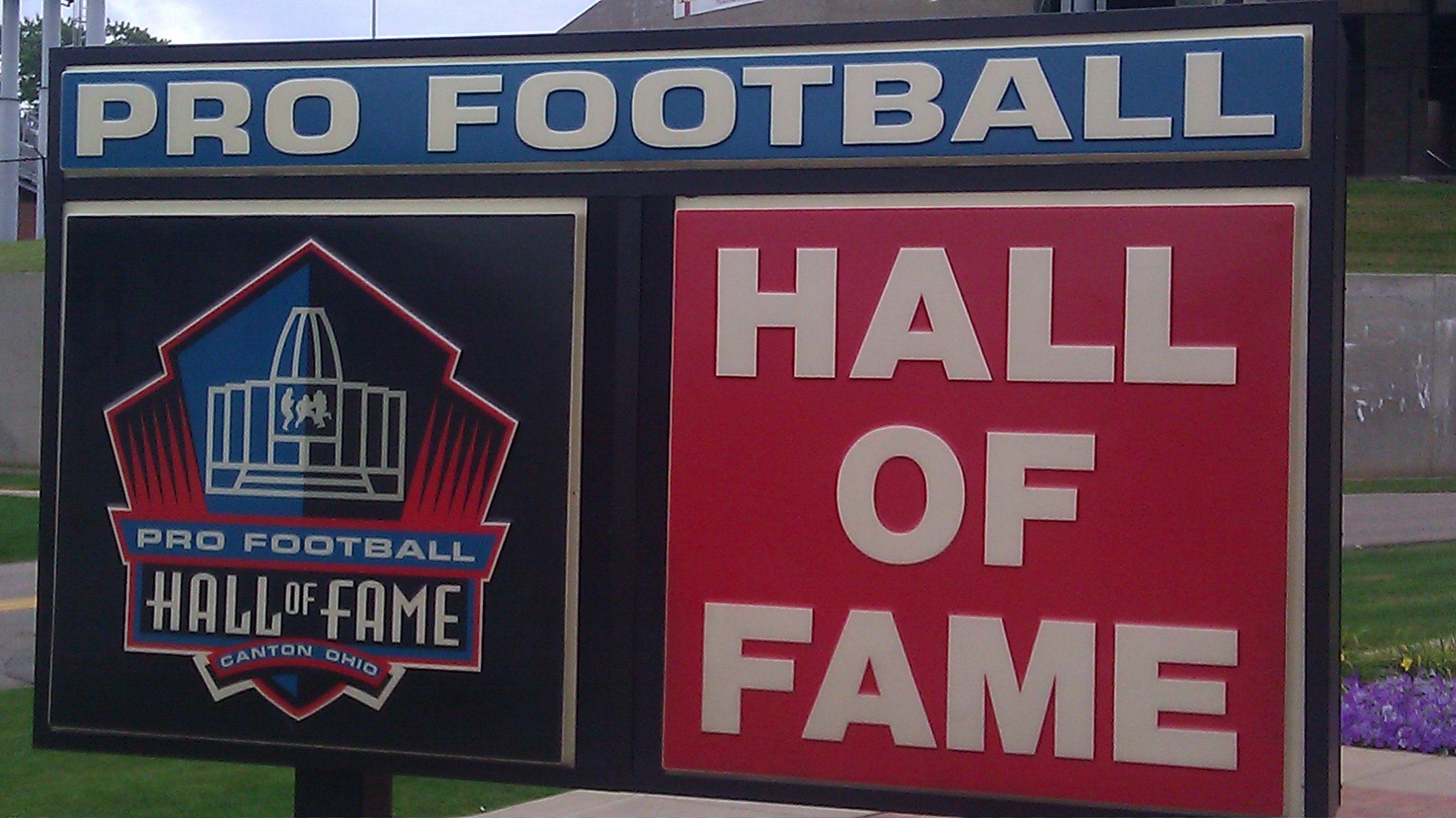 We pull into the Pro Football Hall of Fame, and I don’t know what to expect, but the building has a dome shaped like a football, so I’m pretty sure we’re in the right place. The main entrance lobby has a statue devoted to one of the greatest athletes of all time, Jim Thorpe, and you take a spiral staircase up to a second floor exhibit that includes historic memorabilia such as uniform items, old film footage, and famous signatures and the like that details the history of professional football in America, which started in Pennsylvania and blossomed in Ohio.