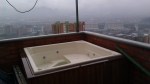 Apartment number two is also a bi-level penthouse, but features a smaller terrace with a Jacuzzi as one of its main selling points.  Its 1300 square feet contain 2 bedrooms and 2 baths, and features a sleek, modern, Euro-inspired kitchen with a separate laundry area.  The vaulted ceiling draws attention to beautiful exposed beams and rafters.  The entire unit has been redone from the floors to the ceiling and the overall effect is of a turn-key luxury bachelor pad, especially when you check out the to die for view from any of the three open terraces.  You can just imagine yourself soaking in the hot tub with a bottle of bubbly and…J  The price?  $187,000 furnished with huge flat screen TVs and brand new appliances (about $179,000 unfurnished).  And yes, it also came equipped with a very attractive 30-something woman!  Such a deal!  J I’m sure it’s no coincidence that the owner of this unit, who I didn’t get to meet, was also an expat from America.
