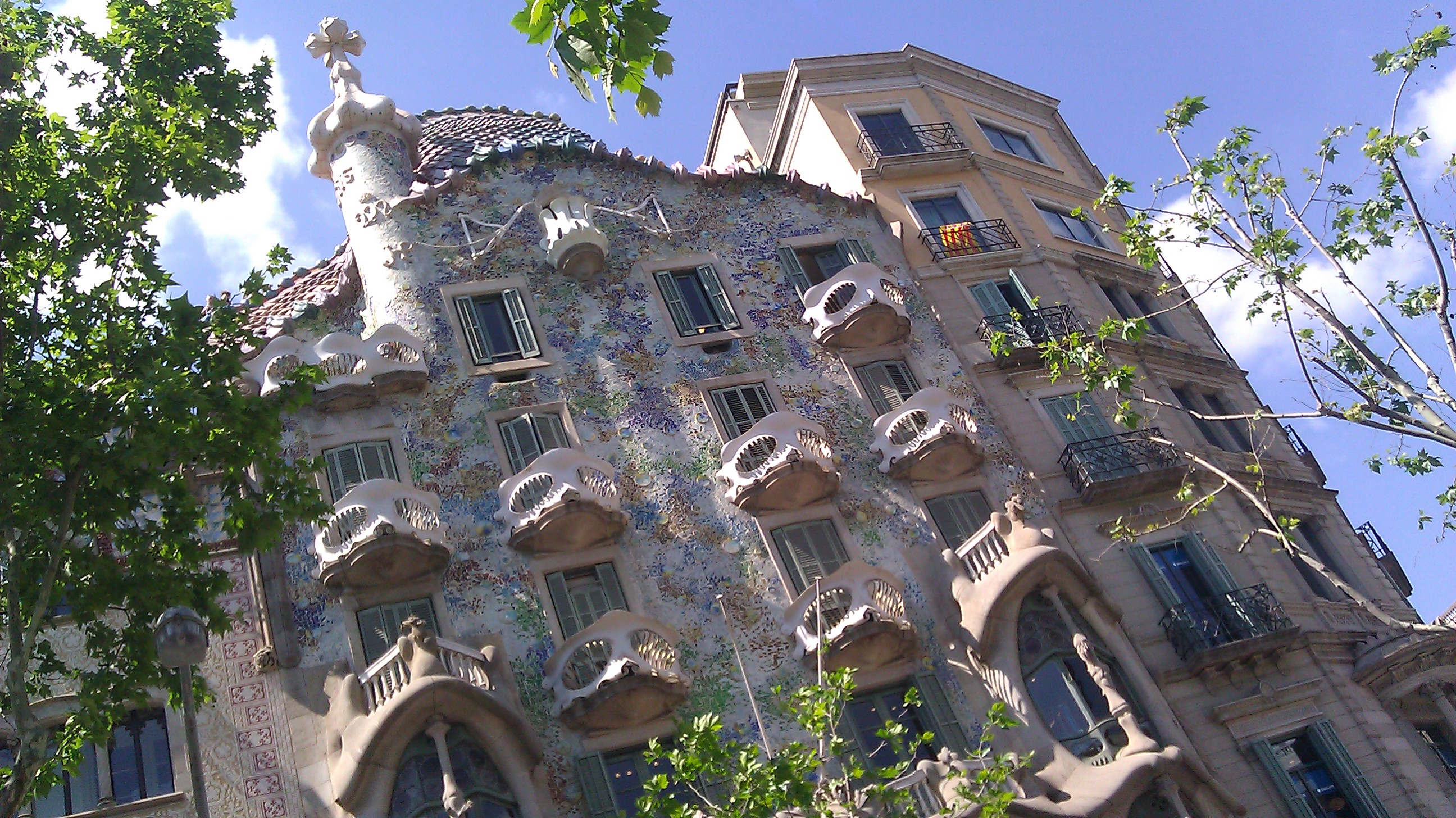 We start our tour with Gaudi’s first commission, a light post that I must say is gaudy Gaudi. He’s a fascinating man, one who showed signs of genius at a very young age and managed to work his way into high society projects by playing the role of a dandy. He must of hated it because he was a deeply religious man who never married yet attended church twice a day for his entire life. He eschewed creature comforts and had no use for money.