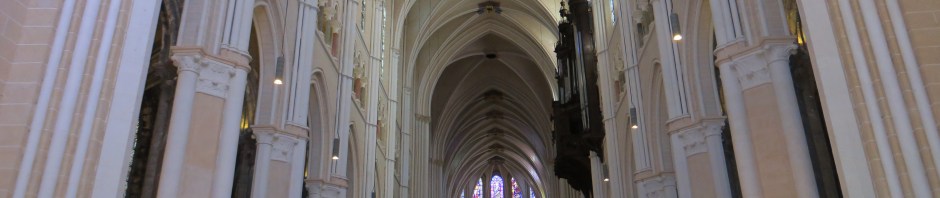 He points to the restoration under way, which he describes as the scrubbing off of centuries of pollution to reveal the original limestone and paint. I look at the bright ochre/white forest of columns vaulting high overhead which are lit mainly by multicolored stained glass. It is beautiful beyond words, and it is in striking contrast to the somber tones of dark grey you’ll see in almost any other cathedral in Europe. Mr. Miller explains to me that these great churches were never meant to be so grim, as they were supposed to be filled with light to illumine the subjects of God’s kingdom. Like Mr. Miller, I cannot see how anyone could argue with a cleaning (even though some do) to erase the neglect of the past. The results speak for themselves.